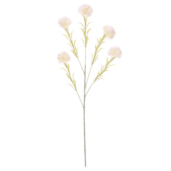 Dotaz na produktUmělý karafiát v krémovém odstínu nabízí pět květů s jemně tvarovanými okvětními lístky z textilu, které věrně napodobují přirozený vzhled. Každý stonek je doplněn zelenými listy, které dodávají celku svěží a přirozený efekt. Díky pevnému provedení stonků je vhodný pro aranžování v různých typech vázy nebo dekorativních kompozicích. Krémová barva květů přináší do interiéru jemný a neutrální tón, který se snadno kombinuje s dalšími dekoracemi. Ideální volba pro dlouhodobou dekoraci bez nutnosti údržby.