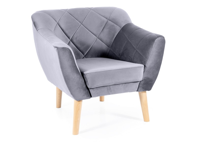 Je čalouněno kvalitní sametovou látkou Bluvel 14 v šedé barvě. Ke křeslu si můžete dokoupit také pohovku LIFE, kterou naleznete v naší nabídce. Křeslo má vysoké dřevěné nožičky, které jsou v barvě buk.