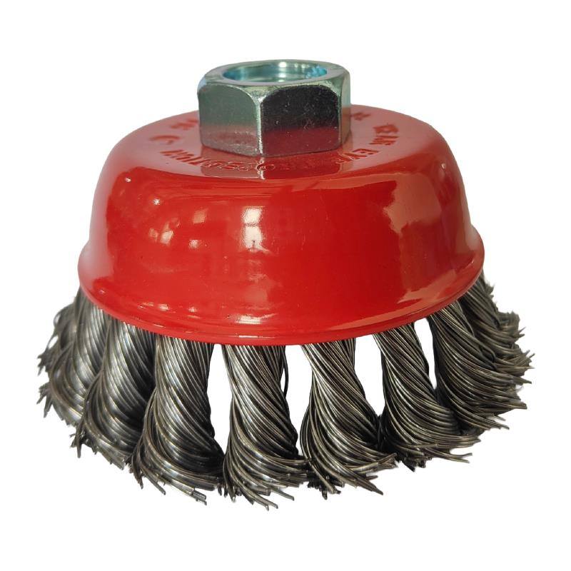 kartáč hrnkový - copyse závitem do úhlové brusky M14vhodný pro těžké kartáčovací práce, na odstraňování barev, rzi, otřepů a zbytků po sváření a jiných nečistotprůměr drátu: 0,5 mm