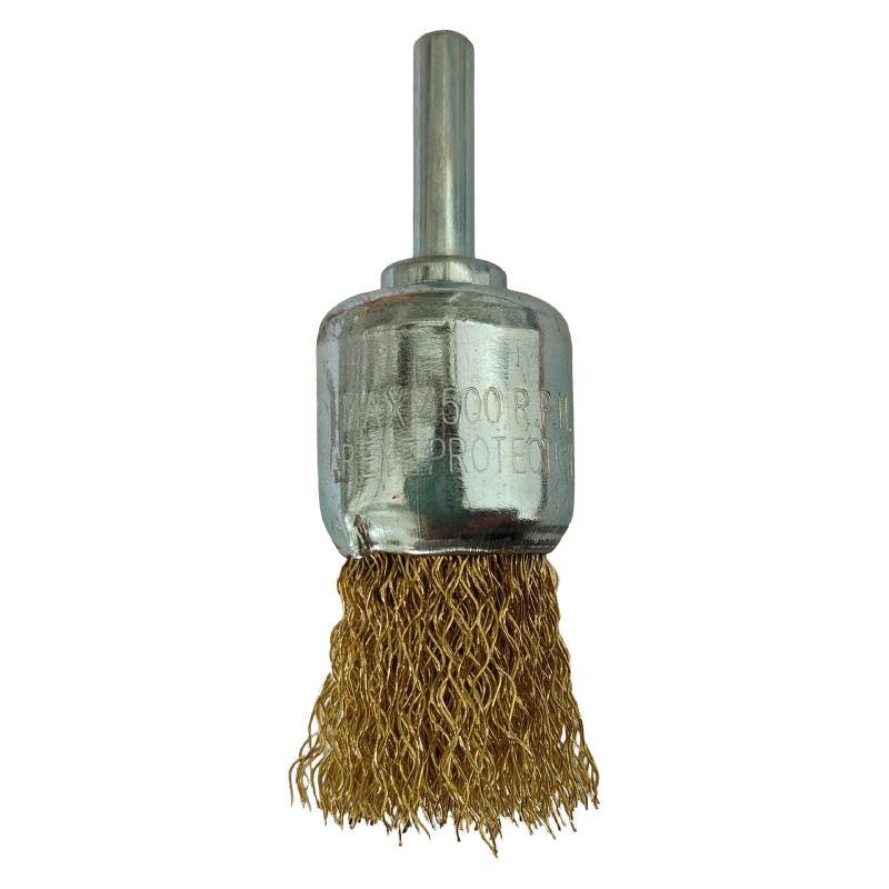 kartáč koncový ENPRO - vlnitýse stopkou do vrtačkyvhodný pro odstraňování barev, rzi, otřepů a zbytků po sváření a jiných nečistotprůměr drátu: 0,3 mm (pomosazený drátprůměr stopky: 6 mm