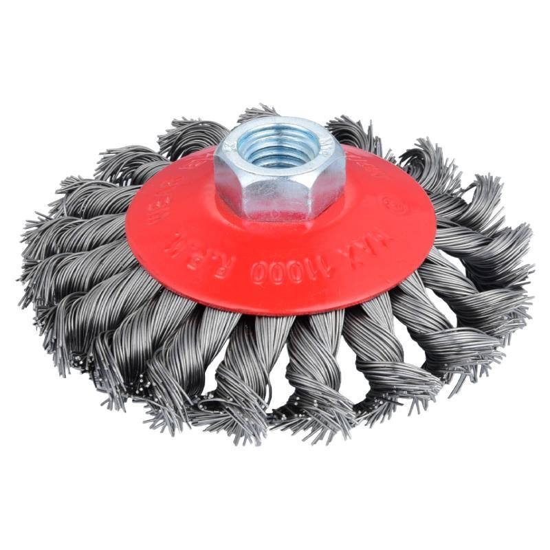 kartáč miskový - copyse závitem do úhlové brusky M14 xvhodný pro těžké kartáčovací práce, na odstraňování barev, rzi, otřepů a zbytků po sváření a jiných nečistotprůměr drátu: 0,5 mm