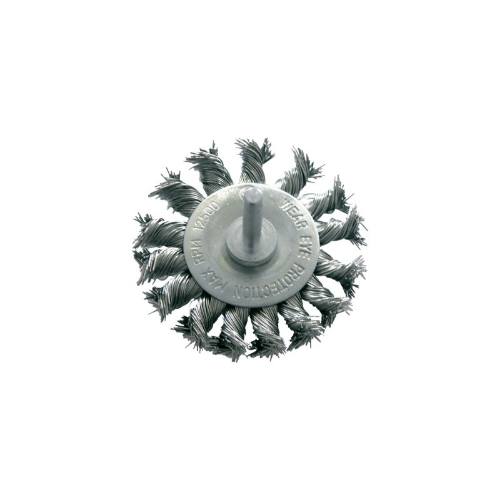 kartáč miskový - kroucený ocelový drátse stopkou do vrtačkyvhodný pro těžké kartáčovací práce, na odstraňování barev, rzi, otřepů a zbytků po sváření a jiných nečistotprůměr stopky: 6 mm