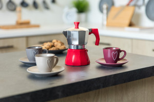 Hliníkové tělo kávovaru již po několika šálcích získá patinu, která je pro správnou chuť kávy nepostradatelná.