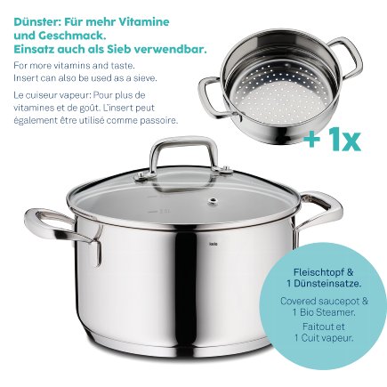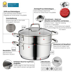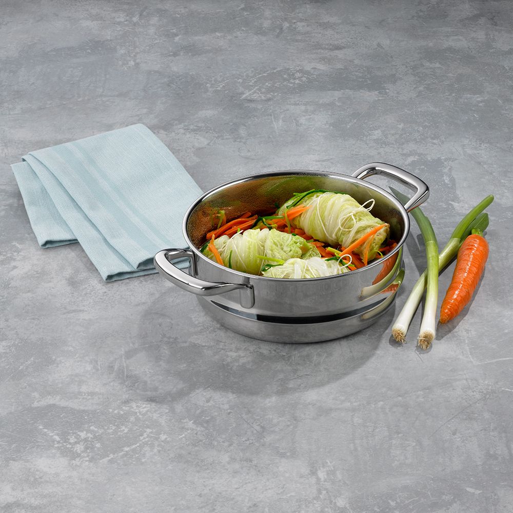 - součástí je napařovací vložka pro vaření v páře, která zajistí šetrnou přípravu zeleniny, brambor, knedlíků, atd
