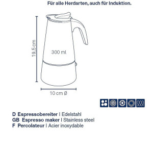 Dotaz na produktVhodná i na indukci! Nerezová ocel, 19,5 cm v, 10 cm 300 ml, 6 šálků