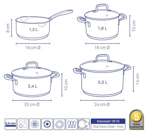 Hledáte vhodnou sadu nádobí do vaší kuchyně? Sadou získáte všechny potřebné nádoby na vaření, ať už budete vařit pro sebe nebo pro více osob. Velkou výhodou je, že můžete objednat najednou více nádobí od ověřeného výrobce KELA. Sadu nádobí sjednocuje jednotný design, navíc nerezová barva celé sady je univerzální a vyjímat se bude v každé kuchyni.