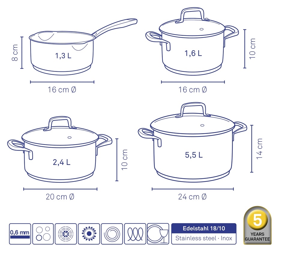 Je to díky inovativnímu energeticky úspornému dnu s uzavřeným hliníkovým jádrem a je možné je použit i na indukci.