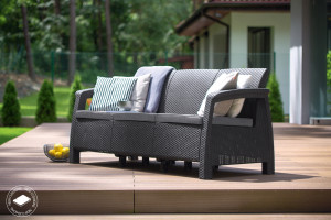 Elegantní trojité sofa je další z mimořádně funkční a moderní linie Corfu. Nábytek je vyroben z vysoce kvalitních materiálů, v imitaci přírodního ratanu. Prostorné a stabilní sedadlo zajišťuje pohodlí a relaxaci až pro tři osoby. Stylová pohovka se výborně hodí do zahrady, na terasu i do interiérů. Vysoce odolné proti nepříznivým povětrnostním vlivům a UV.