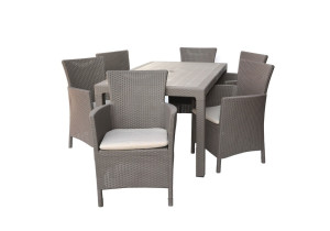 Iowa je elegantní a pohodlné zahradní křeslo s polštářem. Možnost výběru ze třech oblíbených barev a imitace přírodního ratanu vyhovují i těm nejnáročnějších uživatelů. Křeslo je vyrobeno z plastu - odolného proti UV záření a povětrnostním vlivům. Produkt je velmi snadné sestavit a udržovat. Snímatelný potah podušky na zip.