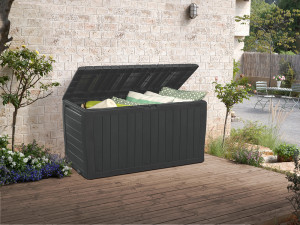 Dotaz na produkt Na splátky ještě dnesPlastový box pro uložení nejrůznějších předmětů (podušky, zahradní náčiní...) od firmy KETER. Výhodou tohoto boxu je jednoduchá montáž (bez využití nářadí - vše složíte jako stavebnici), vysoká kvalita boxu a moderní design. Materiál má UV ochranu a je odolný nepřízni počasí. Udrží až dvě osoby a tak produkt lze využít také jako lavičku.
