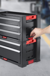 Dotaz na produktKvalitní regál na nařádí od značky KETER. - masivní úložný box z pevného a odolného plastu se třemi shodně velkými zásuvkami - jedna zásuvka je ještě rozdělena na menší přihrádky použitelné na spojovací materiál a jiné drobnosti- regál je stohovatelný, lze kombinovat s dalšími regály KETER- ideální do garáží nebo dílen