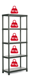 Dotaz na produkt Na splátky ještě dnesSkladové plastové regály PLUS 9504si můžete přizpůsobit podle svých potřeb díky posunovatelným policím s nosností 50 kg. Regál s 5 policemi si můžete i přišroubovat ke zdi (součástky v balení) a díky spojovacímu systému k němu připevnit další regály z řady PLUS. - každá z 5 poliček unese až 50 kg- snadná montáž bez potřeby nářadí- regály se mezi sebou dají spojovat v pevný regálový systém- balení obsahuje i součástky pro přimontování ke zdi- přizpůsobíte si prostor přesně na míru (police jsou posunovatelné nahoru a dolů)- zvýšené nohy umožňují zametení podlahy pod regálem- vhodný do skladů, ale i domácnosti, garáží apod.