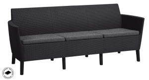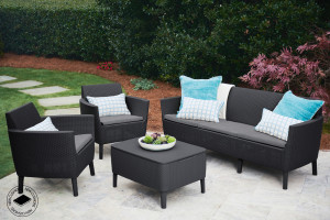 Salemo 3 seater set - souprava která skvěle vynikne v moderním i retro stylu bydlení. Jedná se o elegantní set v imitaci ratanu, skládající se ze dvou křesel, trojitého gauče a stolu, který navíc slouží jako úložný box. Produkt je dodáván s pohodlnými poduškami ve stylových barvách. Lehká a stabilní konstrukce nábytku se skvěle hodí do exteriéru i interiéru. Set je velmi snadný na údržbu. Výrobek je vysoce odolný proti UV paprskům a povětrnostním vlivům.
