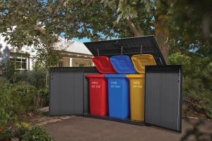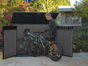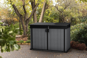 Dotaz na produkt Na splátky ještě dnesProstorná skříň CORTINA MEGA je dostatečně velká pro uložení mnoha nářadí a příslušenství, které jsou potřebné pro práci nejen na zahradě. Bez problému můžete také uložit uvnitř: barbecue gril, podušky, konve, květináče, hračky a mnohé další předměty. Ideální volba pro uskladnění popelnic. Skříň pojme tři popelnice o objemu 240 L, součástí balení jsou i řetízky, díky nimž se víka popelnic otevírají spolu s víkem skříně. Zabudovaná je i ventilace pro prevenci zápachu. Možnost instalování police je další velká výhoda - police nejsou součástí balení, součástí balení jsou šrouby a háčky pro uchycení polic (doporučujeme použít například dřevěné police). Přístup do skříňky usnadňuje šikmý práh, dvoukřídlé dveře a otevírací víko. Jednoduché otevírání víka je zajištěno pomocí hydraulických pístů. Úložná skříňka se vyznačuje jednoduchým a elegantním designem a také strukturou povrchu připomínající dřevo. Velmi stabilní konstrukce, zesílené stěny a možnost zamknutí dvoukřídlých dveří visacím zámkem - to vše zaručí, že uložené předměty jsou chráněny. Skříň CORTINA MEGA je odolná vůči nepříznivým povětrnostním podmínkám. Vysoce kvalitní plastové materiály EVOTECH zajišťují životnost výrobku po mnoho let. Skříň je bezúdržobová, nerezaví, neloupe se. Výborně doplní a rozšíří prostor u Vašeho zahradního domku například u domků z řady Cortina.