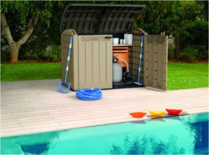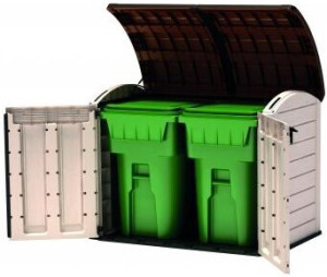 Dotaz na produkt Na splátky ještě dnesProstorná skříň STORE IT OUT ULTRA je vynikajícím řešením pro uložení zahradní techniky, popelnic (dvě popelnice o objemu 360 L), příslušenství a nářadí, ale i různých druhů domácích potřeb. Pojme i vybavení pro volný čas, jako jsou jízdní kola a zahradní nábytek atd. Přístup do skříňky usnadňuje šikmý práh, dvoukřídlé dveře a otevírací víko. Jednoduché otevírání víka je zajištěno pomocí hydraulických pístů. Úložná skříňka se vyznačuje jednoduchým a elegantním designem a také strukturou povrchu připomínající přírodní dřevo. Možnost instalace vnitřní police zvyšuje funkčnost výrobku. Robustní rám chrání uložené předměty proti vlhkosti a nepříznivím povětrnostním podmínkám, zatímco vysoce kvalitní plastové materiály zajistí životnost výrobku po mnoho let. Součástí jsou i kovové výztuhy pro zajištění maximální stability. Skříňka je uzamykatelná, je možné zajistit nejen dvoukřídlé dveře, ale i víko, tak aby uložné předměty byly v bezpečí.