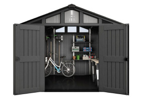 Dotaz na produkt Na splátky ještě dnesVítejte v nové éře zahradních úložných řešení s naším extra velkým, bezúdržbovým domkem STRONGHOLD 10x8. Navržen s ohledem na Vaše potřeby a estetiku, tento robustní plastový zahradní dům je vyroben z prvotřídního složení pryskyřic, které zajišťuje maximální odolnost vůči nepříznivým povětrnostním podmínkám. Se širokými dvojitými dveřmi můžete do domku STRONGHOLD 10x8 uskladnit jízdní kola, sekačku na trávu, nářadí, truhlářskou dílu či spoustu dalších zahradních doplňků. Jeho výjimečně pevná ocelová konstrukce spolu s odolnou, vyztuženou střechou s nosností až 150 kg/m2 zajišťuje dlouhodobou životnost domku. Nezapomínejte na to, že všechny domky od značky KETER jsou vybaveny vysoce odolnou podlahou, která zvyšuje jejich odolnost vůči každodennímu opotřebení. Pevná podlaha chrání Váš majetek před vlhkostí a nečistotami. Nosnost podlahy je také 150 kg/m2. Domek je zapotřebí stavět na rovném základu (beton, dlažba, dřevěná podlaha). Díky možnosti uzamčení můžete mít jistotu, že Váš majetek je v bezpečí. Věříme, že bezúdržbový domek STRONGHOLD 10x8 představuje perfektní spojení mezi praktičností a designem, a stane se tak dokonalým doplňkem Vaší zahradní oázy. HLAVNÍ VÝHODY Dvojitá stěna odolná proti povětrnostním vlivům s ocelovou výztuží Unikátní stěny EVOTECH ™ Široké dvojité dveře a světlíky Vysoká podlaha Robustní strop Vysoký strop Zajišťovací systém z ušlechtilé oceli (zámek není součástí dodávky) 10 let záruka - Výrobce KETER poskytuje desetiletou záruku na výrobní vady plastových domků.