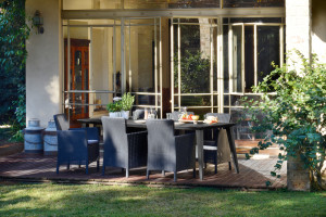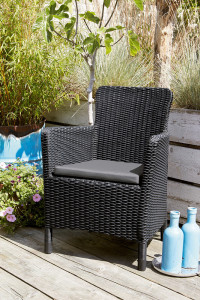 Moderní křeslo Trenton Dining nabízí jedinečné estetické a funkční hodnoty: dobře tvarované a zakřivené opěradlo a opěrky rukou a pohodlný polštář. Všechny tyto funkce zajišťují pohodlný odpočinek na terase nebo v interiéru. Produkt působí svým elegantním designem. Je dokonalou alternativou k MELODY stolům, jejichž design připomíná přírodní proutěný ratan. Díky vysoce kvalitnímu materiálu je odolný vůči vlhkosti a UV záření. Snímatelný potah podušky na zip.