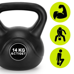 Kettlebell 14 kg ACTIGET ACT0085 je navržen pro náročné cvičence, kteří hledají spolehlivé a odolné vybavení. Díky kompozitnímu složení a tvrzenému ABS plášti je velmi odolný vůči nárazům i dlouhodobému používání. Vnitřní cementová výplň zajišťuje stabilní tvar a dlouhou životnost, takže je vhodný jak do domácí posilovny, tak do profesionálního fitness prostředí.