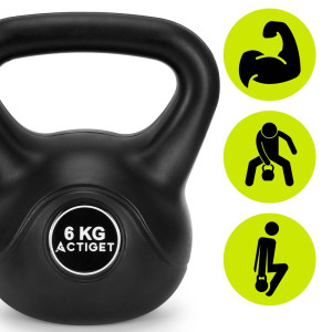Kettlebell 6 kg ACTIGET ACT0081 je navržen pro začátečníky i mírně pokročilé cvičence, kteří hledají spolehlivé a odolné vybavení. Díky kompozitnímu složení a tvrzenému ABS plášti je velmi odolný vůči nárazům i dlouhodobému používání. Vnitřní cementová výplň zajišťuje stabilní tvar a dlouhou životnost, takže je vhodný jak do domácí posilovny, tak do fitness centra.