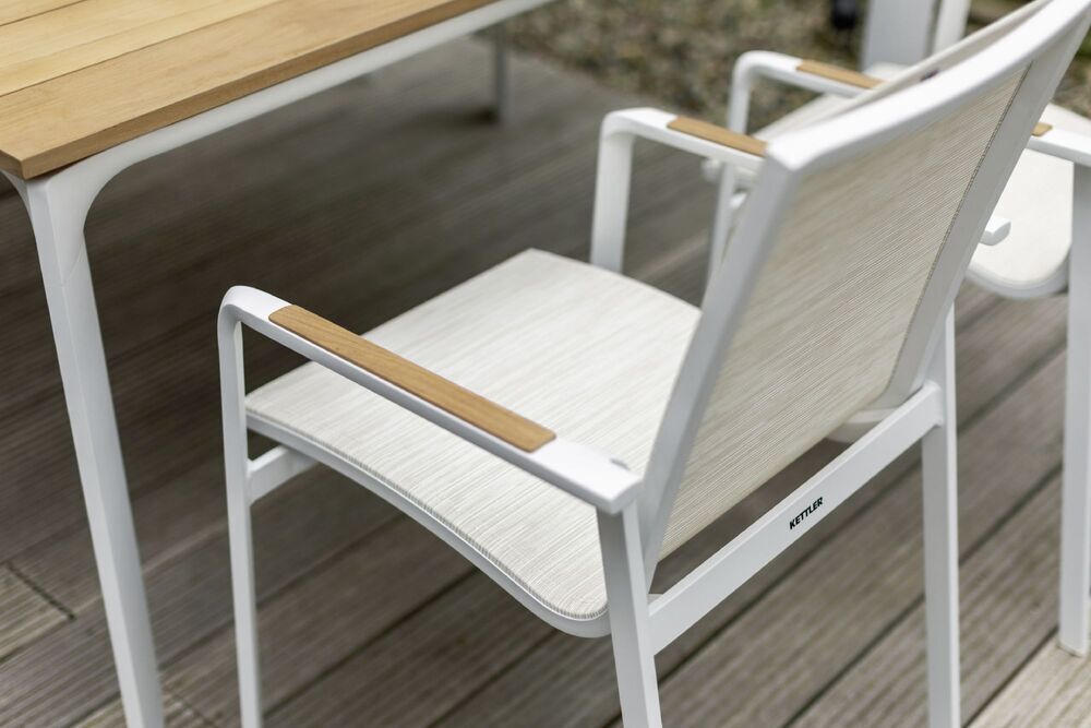 Dotaz na produkt Na splátky ještě dnesStohovatelné křeslo KETTLER DIAMOND – prémiový design s teakovými područkami Představujeme stohovatelné křeslo DIAMOND od renomované německé značky KETTLER, které spojuje elegantní a čistý design, kvalitu a praktičnost. Díky svému nadčasovému vzhledu s zaobleným rámem a područkami z FSC®-certifikovaného teaku vnáší do prostoru přírodní a luxusní akcenty, které okamžitě zaujmou. DIAMOND křeslo je nejen vizuálně atraktivní, ale také praktické a pohodlné. Ergonomický design s možností stohování umožňuje snadné ukládání a manipulaci, což ocení zejména profesionální prostory. Použitá textilie zaručuje kvalitu zpracování a odolnost. Díky kvalitnímu mixu materiálů je křeslo odolné vůči opotřebení a snadno se čistí, takže je ideální pro HORECA sektor – hotely, restaurace, kavárny či wellness centra. S možností kombinace s dalšími produkty řady DIAMOND – polohovacím křeslem a lehátkem se snadno pojízdnými kolečky si můžete vytvořit kompletní a harmonický jídelní či relaxační prostor. KETTLER DIAMOND – elegantní design, prémiová kvalita a maximální odolnost pro komerční i soukromé prostory. HLAVNÍ PŘEDNOSTI: Prémiový design s zaobleným a štíhlým rámem a teakovými područkami s FSC certifikátem – přírodní a luxusní akcenty, příjemný na dotek Stohovatelné provedení pro snadné ukládání a manipulaci Odolný a snadno čistitelný materiálový mix – vhodné pro intenzivní používání Nosnost až 120 kg Ideální pro HORECA sektor – hotely, restaurace, kavárny či wellness centra Možnost kombinace s dalšími produkty DIAMOND: polohovací křesla, lehátka s kolečky Ergonomický a pohodlný tvar – vhodné pro relaxaci i dlouhé posezení Nadčasový vzhled, který zaujme a podtrhne prestiž prostor