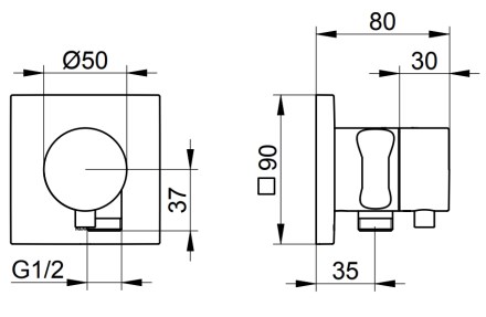 rozměr krycí rozety 90x90 mmhloubka 80 mmrozměr připojení DN 15barva chromuzavírací a přepínací funkcepro 2 spotřebičes rukojetí IXMO Comforts napojením hadice a držákem sprchypro hadice s kónickou...