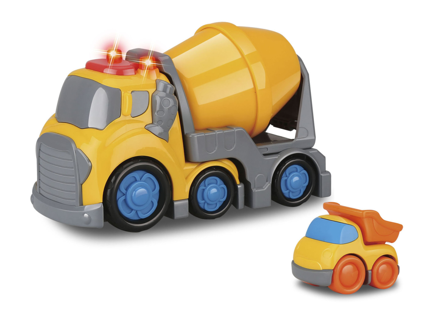 Dotaz na produktKiddy Auto míchačka s efekty. Balení obsahuje auto míchačku s efekty 19,5 cm a malé sklápěcí auto 6,5 cm. Světelné a zvukové efekty. Efekty se aktivují stiskem tlačítka na střeše kabiny. Návěs s míchačkou, lze otáčet. Malé nákladní auto má funkční sklápění. Volná kola. 2xAA baterie součástí. Doporučený věk: od 18 měsíců