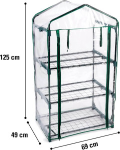 Dotaz na produktHledáte praktický a kompaktní skleník pro balkon,terasu i zahradu? Zahradní foliovník Kinzo Garden se 3 policemi je perfektní řešení pro pěstování choulostivých rostlin a kuchyňských bylinek. Tento transparentní skleník je ideální pro jakékoliv prostory a skvěle se hodí na balkón, terasu nebo do zahrady. Díky třem úrovním poskytuje dostatek místa pro různé rostliny, jako jsou cherry rajčata, jahody, bylinky nebo květiny. Skleník chrání vaše rostliny před deštěm, větrem a chladem, což je ideální pro domácí pěstování.