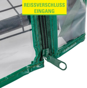 ✅ Skleník Kinzo Garden složíte díky zacvakávacímu systému snadno a bez použití nářadí. Dveře se otevírají na zip a mohou se srolovat, což usnadňuje přístup.