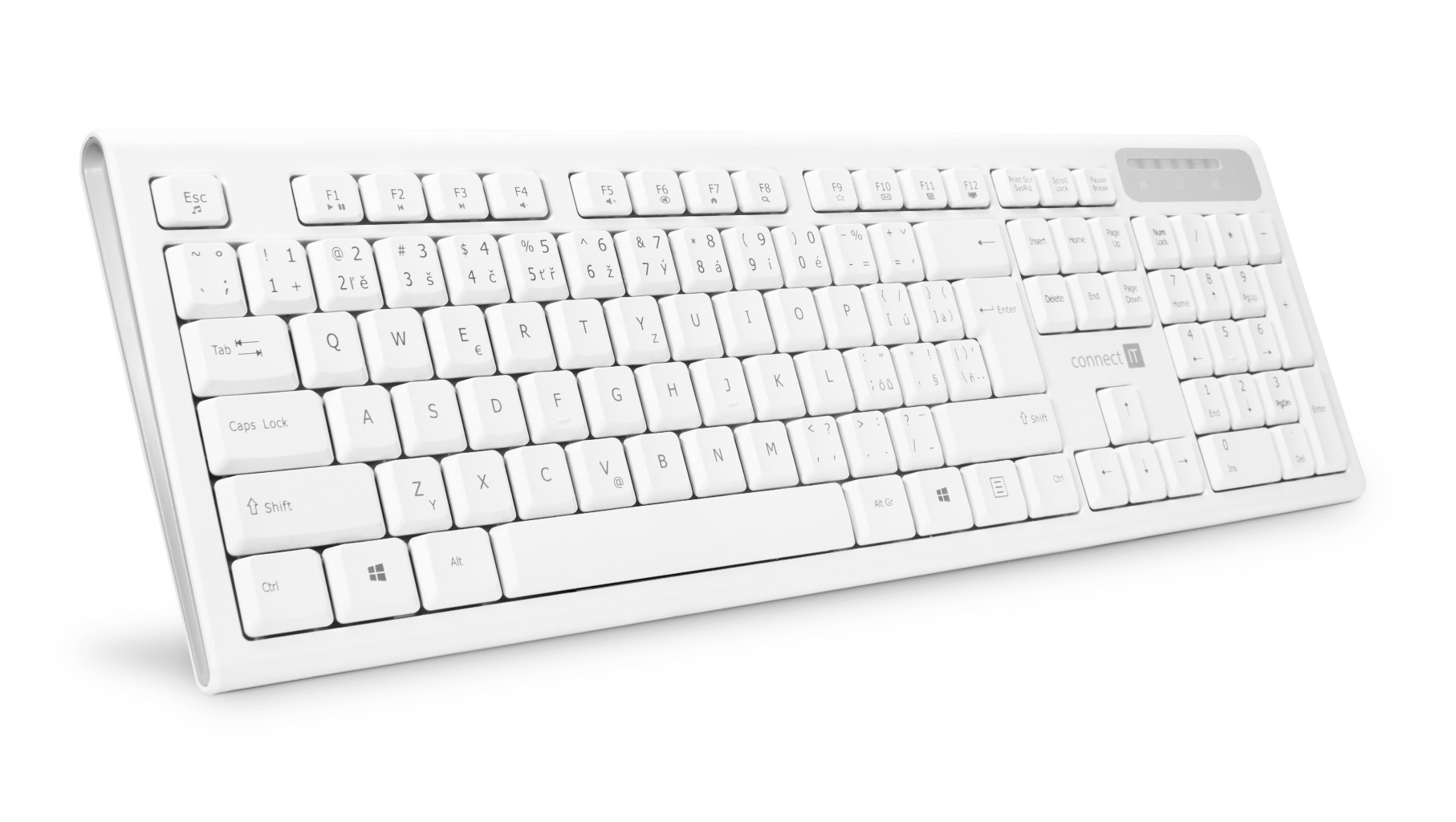 Multimediální bezdrátová klávesnice v bílo šedém designu Connect IT CKB-3010-CS je super pomocníkem na každý počítačový stůl.