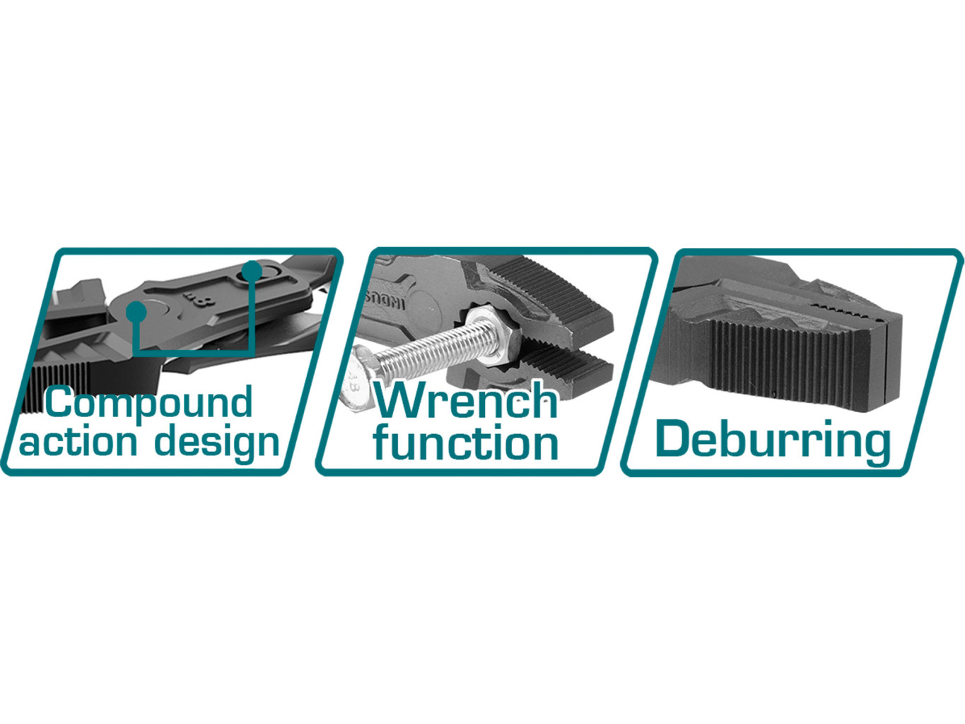 Dotaz na produktVelikost: 9,5"/240 mm, Úspora energie 65% než běžné kleště, Materiál: Cr-V, Povrchová úprava: teflonový povlakTPR tříbarevná rukojeť pro pevné uchopení a pohodlíS funkcí klíčeS funkcí odhrotování