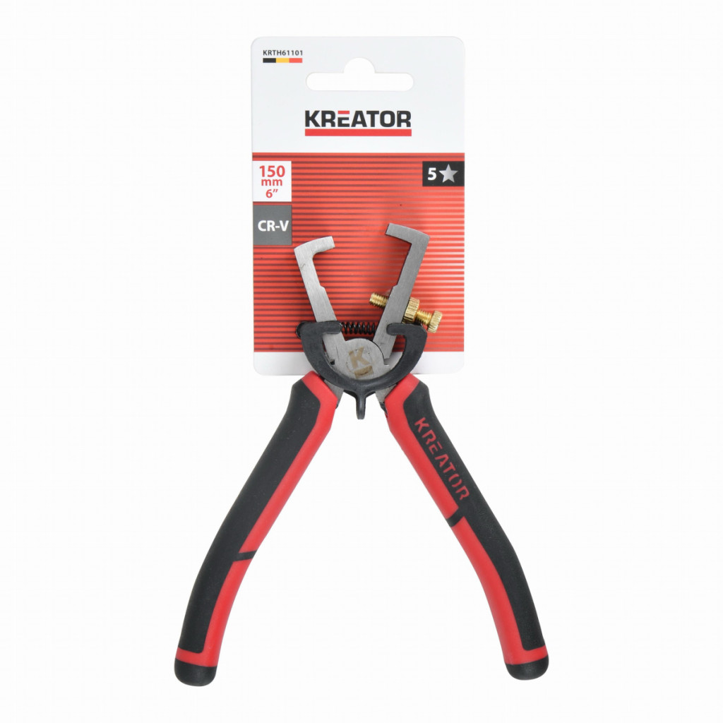 Dotaz na produktTyto odizolovací kleště KRTH61101 od Kreator jsou vyrobeny z chrom-vanadiové oceli a mají délku 150 mm. Používejte je k snadnému odstranění izolačního materiálu obklopujícího elektrické vodiče, aniž byste je poškodili. Měkké gumové rukojeti poskytují pevný, protiskluzový úchop a pohodlné používání. Pomocí šroubu zvolte správnou hloubku řezu.