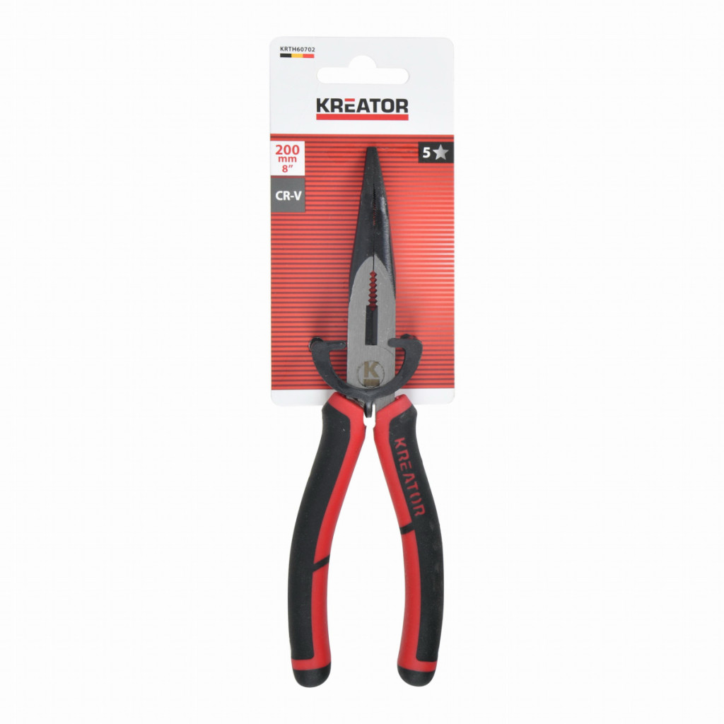 Dotaz na produktTyto vysoce kvalitní kleště KRTH60107 od Kreator se zahnutými čelistmi lze použít k držení, stříhání, ohýbání, odizolování a krimpování vodičů. Jsou vyrobeny z materiálu CR-V s povrchovou úpravou satin a mají délku 200 mm. Měkké gumové rukojeti poskytují pevný, protiskluzový úchop a pohodlné používání.