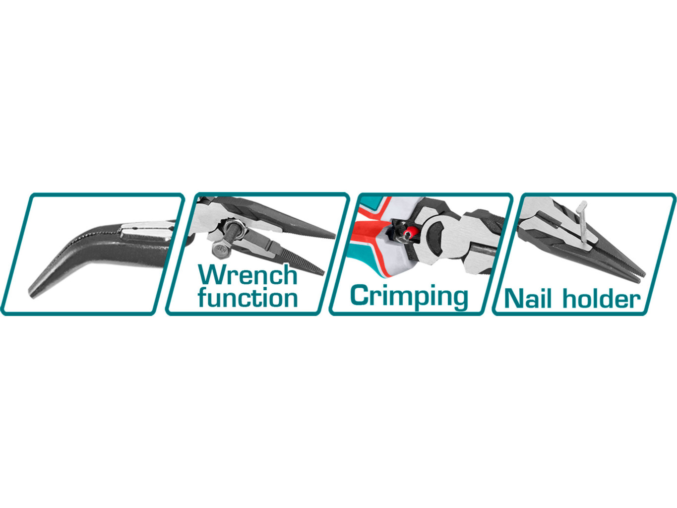 Dotaz na produktVelikost: 200 mm, Úspora energie 30 % oproti běžným kleštím, Materiál: Cr-VPovrchová úprava: černá a leštěná, TPR tříbarevná rukojeť pro pevné uchopení a pohodlí, S funkcí krimpování, S funkcí držáku hřebíků, S funkcí klíče.