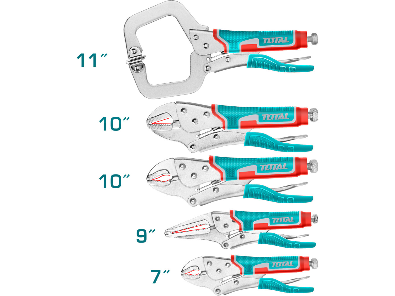 Dotaz na produktSada rychloupínacích kleští je zabalena v rozkládacím obalu z PVC. Obal má 5 kapes, pro každé kleště jednu. Po zamotání obalu do ruličky je obal vybaven provázkem pro zavázání. Jednotlivé kleště jsou vybaveny sklolaminátovým krytím rukojetí, což usnadňuje úchop a práci s nůžkami. Sada obsahuje tyto typy kleští: 1 ks 180mm kleště se zahnutými čelistmi 1 ks 230mm kleště rychloupínací štípací s dlouhými čelistmi 1 ks 230mm kleště rychloupínací štípací se zahnutými čelistmi 1 ks 250mm kleště s přímými čelistmi 1 ks 280mm kleště rychloupínací C