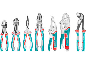 Dotaz na produkt Na splátky ještě dnesTento set kleští je složen z kleští řady industrial, tedy k profesionálnímu užití. Sada obsahuje Siko kleště, kleště kombinované, heavy duty boční kleště, kleště přímé, posuvné kleště a dva kusy kleští rychloupínacích. Všechny kleště jsou vyrobeny z chrom-vanadové oceli. Jsou leštěny a tepelně tvrzeny. Rukojeť je obalena dvoubarevnou pryžovou vrstvou, která zajistí velmi příjemný úchop. Sada je zabalena v plátěné tašce.