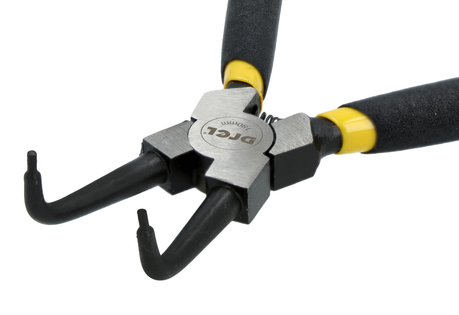 Kleště na vnitřní pojistné kroužky v zahnutém provedení k montáži a demontáži.