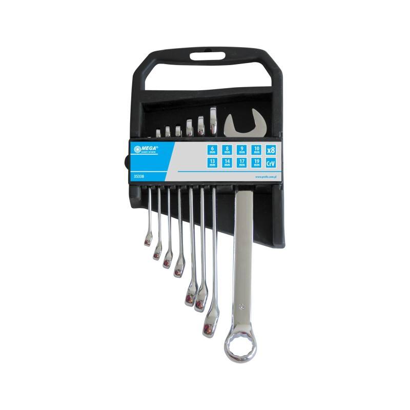 klíče očkoploché - sada 6ksvyrobeny kováním z vysoce kvalitní CrV ocelirozměry klíčů: 8, 9, 10, 13, 14, 17 mmsada je dodávána na plastovém držáku