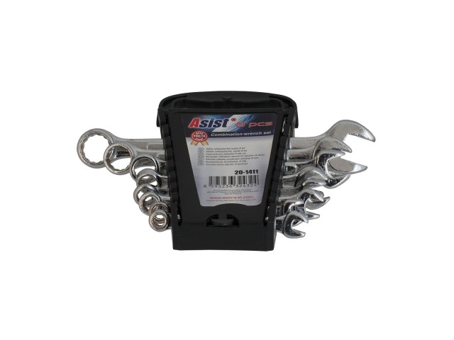 Výborná sada očko-plochých klíčů z Chrom-vanadiové oceli od značky Asist. 8 ks klíčů 8, 10, 11, 12, 13, 14, 17 a 19. Sada je v praktickém obalu, který se dá použít i jako držák.