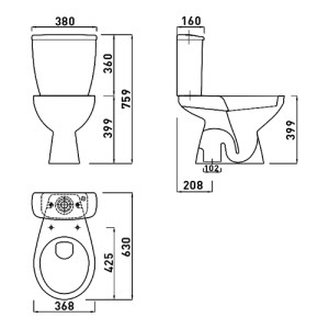 Klozet kombi TRINNITY včetně nádržky a sedátka, spodní odpad, dvojčinné splachování, rozložený, včetně uchycení
