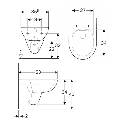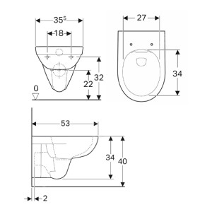 Klozet závěsný 53 cm s hlubokým splachováním, Rimfree, SELNOVA
