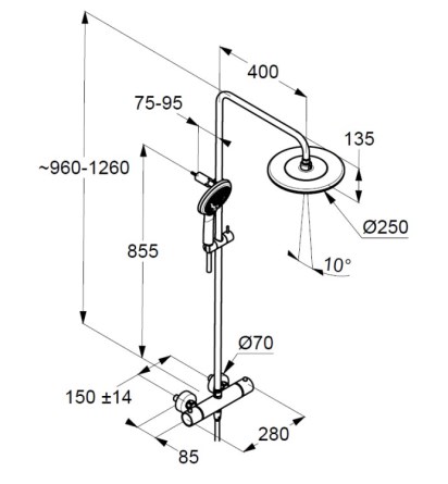 - vzdálenost sprchové tyče od zdi 75 - 95 mm