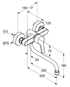 vývod 200 mmrozteč 150 mmpřipojení G 3/4barva chromuzavřená pákanástěnná montážperlátor M 22x1keramická kartuše s možností omezení maximální teploty vodyotočný výtoks-připojeníPARAMETRY:Montáž:...