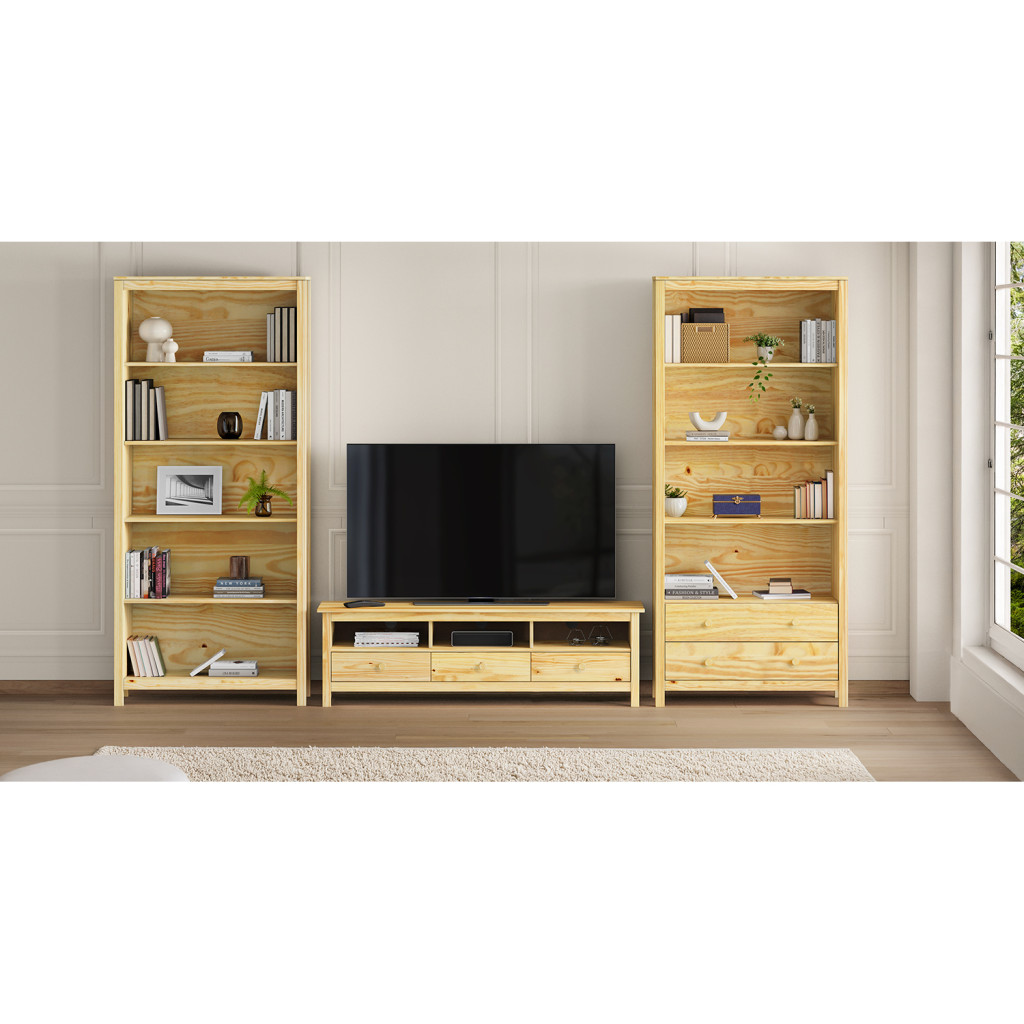 Dotaz na produkt Na splátky ještě dnesmateriál masiv borovice, lakované provedení tři police, dvě zásuvky s kovovými pojezdy