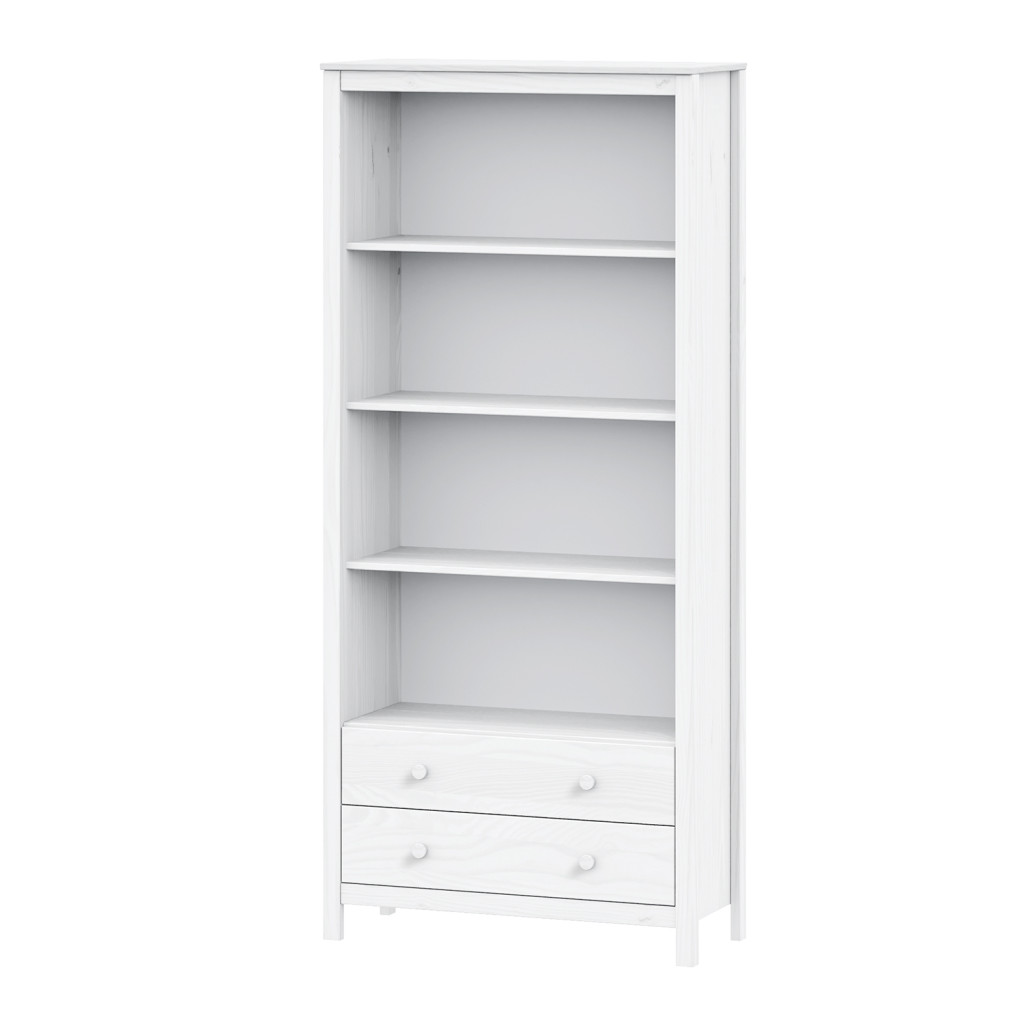 Dotaz na produkt Na splátky ještě dnesmateriál masiv borovice, barevné provedení bílý lak tři police, dvě zásuvky s kovovými pojezdy
