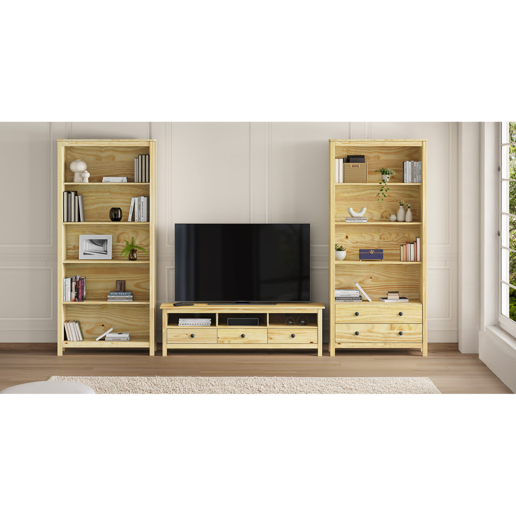 Dotaz na produkt Na splátky ještě dnesmateriál masiv borovice, lakované provedení kovové úchytky v barevném provedení černěná mosaz tři police, dvě zásuvky s kovovými pojezdy