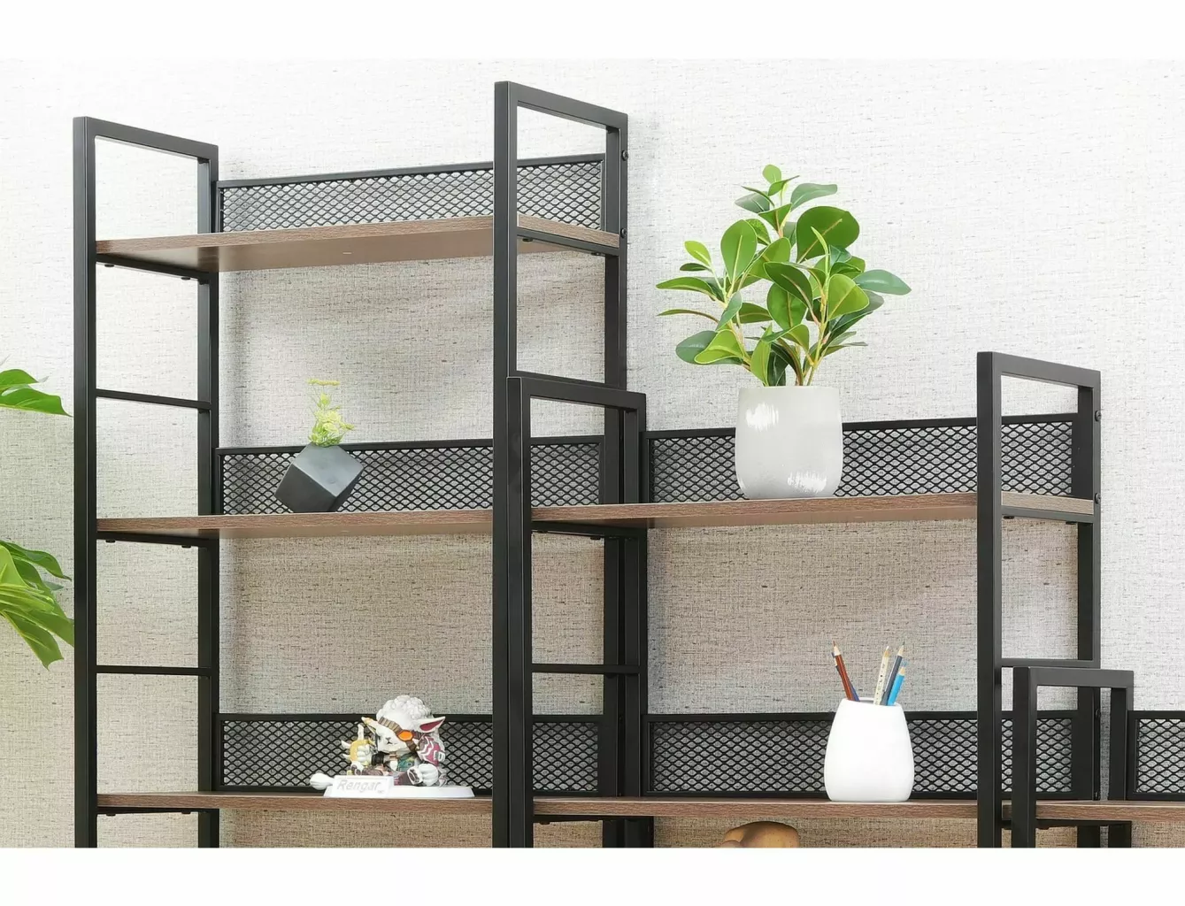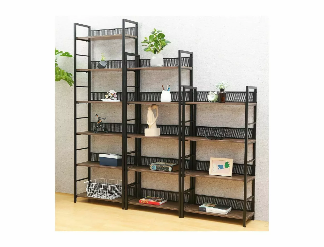 Dotaz na produkt Na splátky ještě dnesPolice, vrchní deska: laminovaná deska, rám: kov, barva: dub / matná černá. Kolekce je k dispozici ve 3 výškách polic.