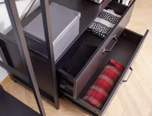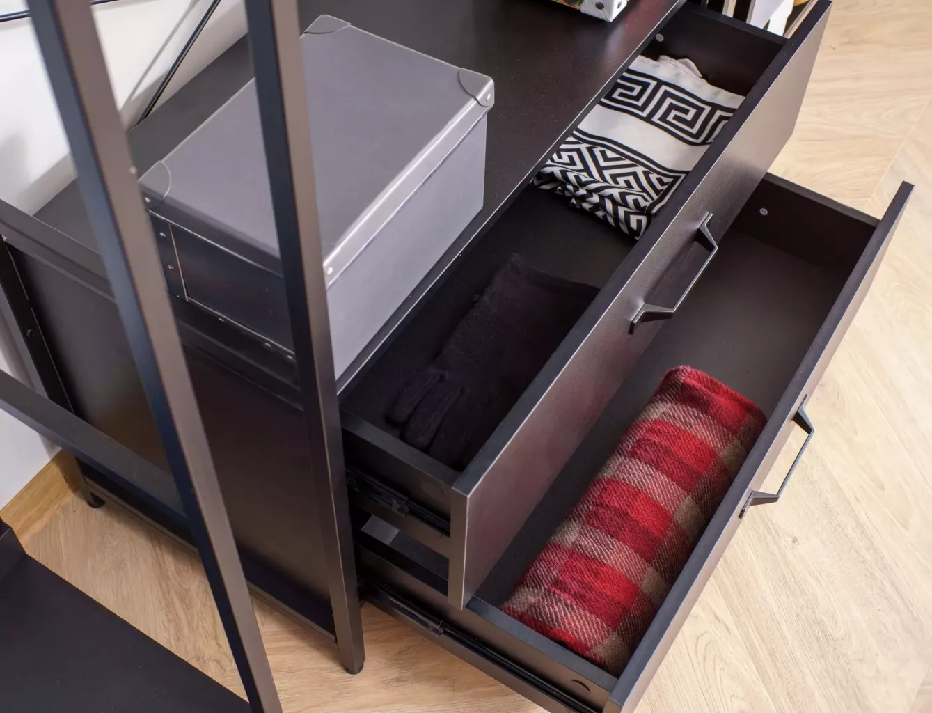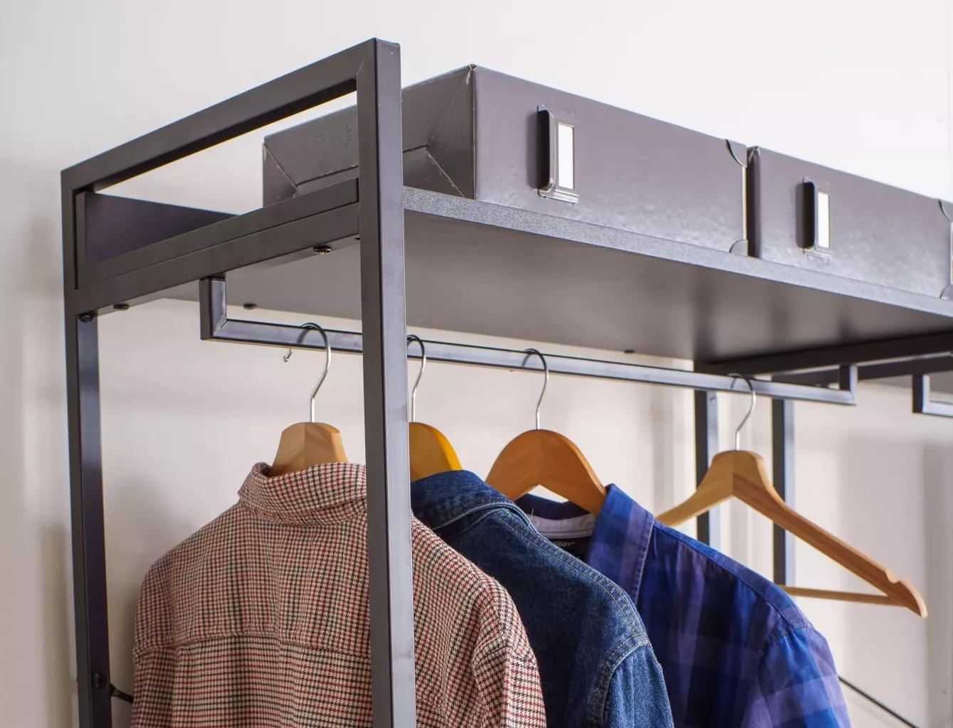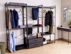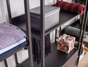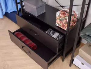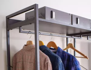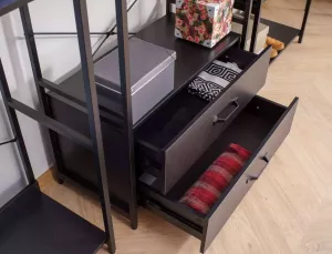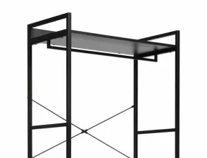 Dotaz na produkt Na splátky ještě dnesPolice/věšák, police: laminovaná deska, rám: kov, barva: černá/matná černá. Uzamykatelná skříňka s policí.