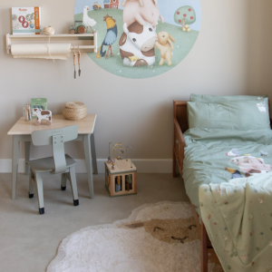 Koberec je součástí designové kolekce textilu a doplňků Little Dutch Farma.
