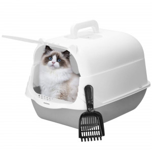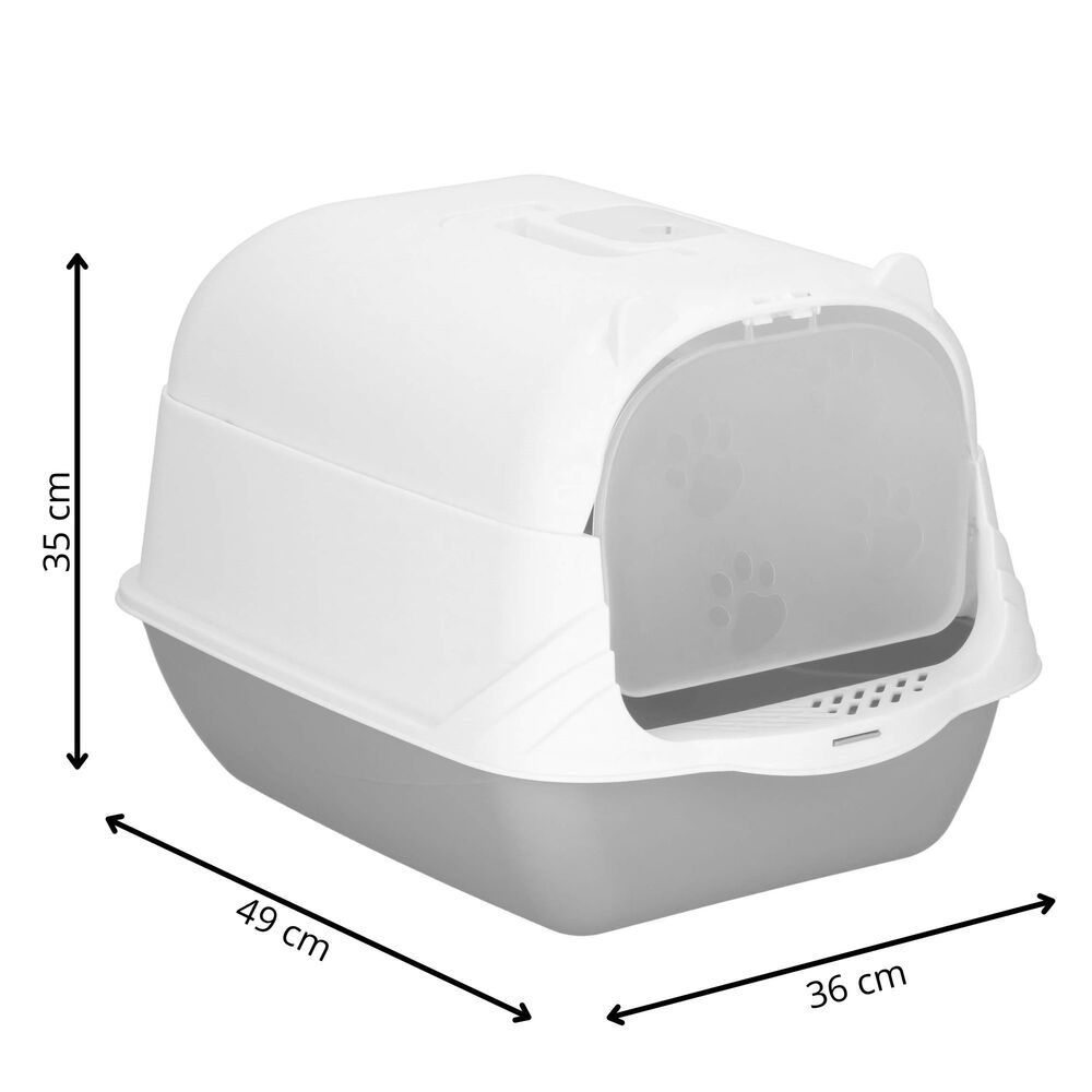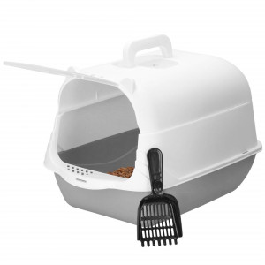 Uzavřená toaleta pro kočky s filtrem a lopatkou. Odolná a snadno omyvatelná konstrukce s odklápěcím víkem pro rychlou údržbu. Vhodná pro různé druhy steliva, s praktickou lopatkou pro každodenní čištění. Pohyblivá dvířka umožňují pohodlný vstup i výstup. Filtr pomáhá omezit nepříjemné pachy z kočičího WC. Vysoké okraje zabraňují nepořádku kolem toalety. Záchod pro kočky je ideální do každé domácnosti i na cestování. Integrovaná rukojeť umožňuje snadné přenášení.