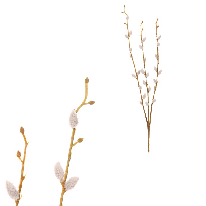 Dotaz na produktUmělá rostlinná přízdoba v podobě trsu větviček s kočičkami, bude skvělým dekoračním doplňkem vaší rostlinné výzdoby. Jako umělá, nabízí trvalé uplatnění pro aranžování a můžete k ní jednoduše přidávat květiny, různé rostlinné přízdoby a další ozdobné prvky.